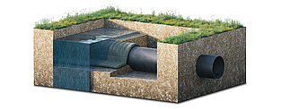 Factores tales como los diámetros de tuberías grandes, freáticos altos y poco espesor de suelo, hacen que el trabajo de instalar o renovar tuberías sea un desafío. Donde hace falta evitar la flotación o levantamiento de la tubería, una simple capa de geosintético con relleno puede ser una solución sostenible y económica. Nuestro sistema consiste en un geocompuesto Basetrac que envuelve un relleno de material de la excavación. Incluso en el caso de una capa de suelo de poco espesor, esta solución proporciona una protección segura contra flotabilidad y levantamiento.